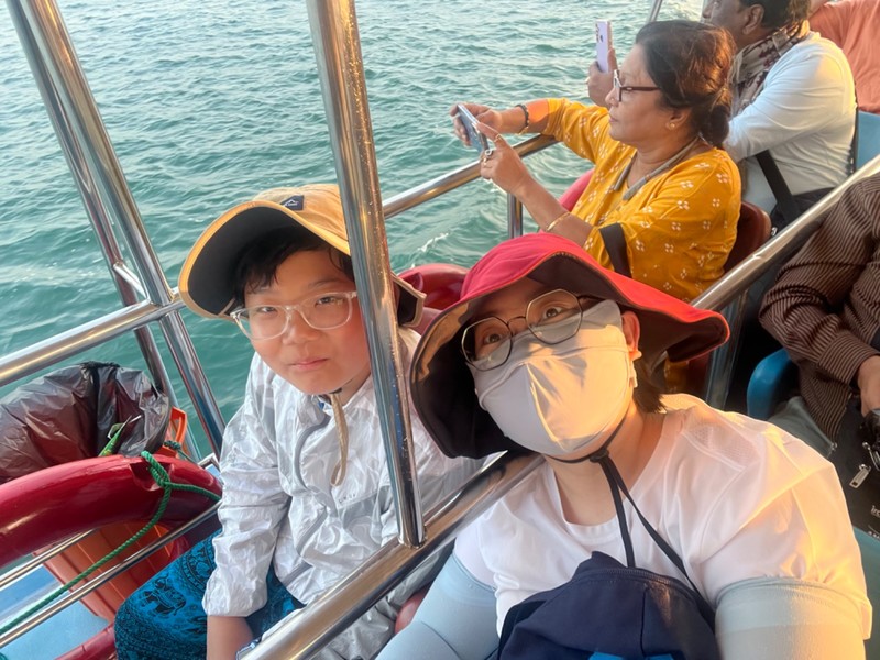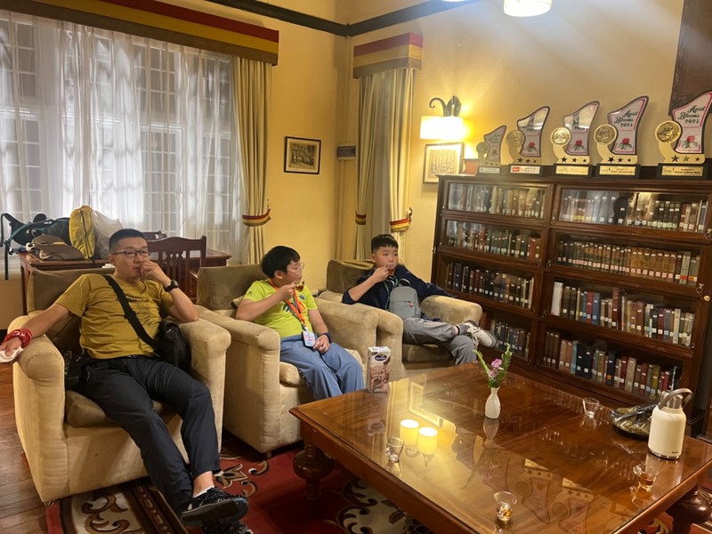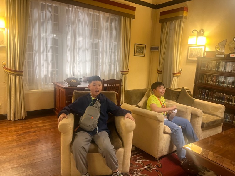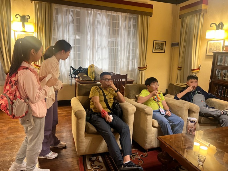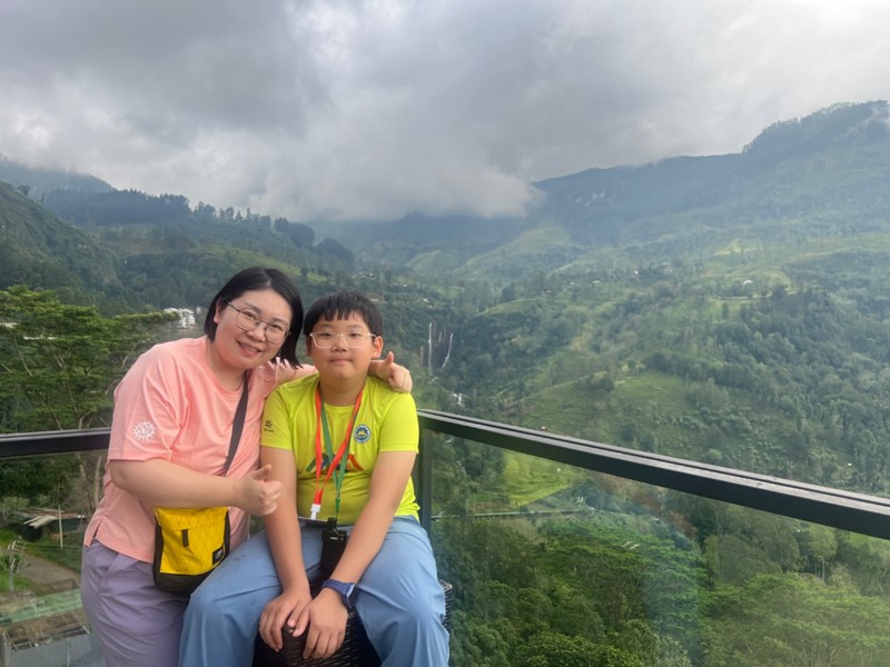 今天我们来到了斯里兰卡的第二大城市—康提。这里原来是锡兰王国的发源地,地处斯里兰卡中部,可以说斯里兰卡的大部分历史都在这里。而斯里兰卡游是个多宗教国家,尤其以佛教为最,而康提城里最有名的就是佛牙寺,世界上仅有两颗佛牙舍利,这里一颗,我们国家的八大处有一颗。虽不信佛还是和儿子一起入内参观一番,为了尊重人家的习惯,不能露腿,穿了短裤的儿子和兄弟小徐被迫穿上了“裙子”,你还真别说,还挺好看。由于不情不愿,所以照片没几张,且看且珍惜。参观完这条裙子还被儿子送给路边的人了,缘分真是短暂,呜呜呜。儿子们手机捧的是要送给佛祖的鲜花,这花还不让闻。除了佛牙寺,康提还有康提湖,湖光山色交映,水鸟成群,还有呆头呆脑的水鸭,这里的野生鸟类在草坪上闲逛,就像咱俩后院里的鸡一样,你敢信?晚上入住的酒店在山里,超级凉爽,景色绝美!上照片喽!