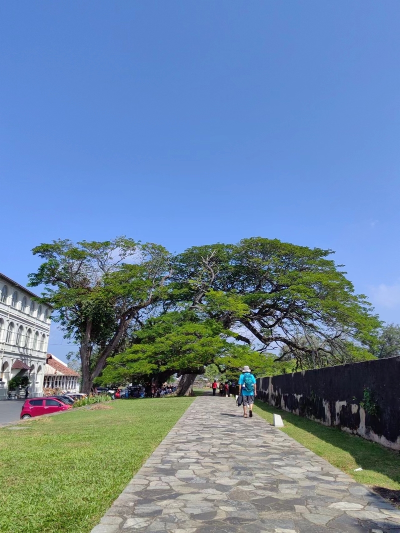 1月23日 加勒古堡,位于斯里兰卡西南部,坐落在首都科伦坡南部约120KM的岩石半岛上,这个半岛是个天然的港口,这里曾经是著名的海上贸易中转站。拥有2700多年的历史,被誉为斯里兰卡历史文化的象征之一更是联合国教科文组织世界遗产的一部分。 18世纪,加勒古城享受了一段没有任何外来侵害、宁静祥和的时期,但是,英法丹西等帝国对这座处于印度洋边缘的荷兰壁垒垂涎已久,1802年,半岛沦为英国的殖民地。1988年,加勒古城被列入《世界遗产目录》。 漫步在古城墙的小径上,仿佛回到了属于古代海洋丝绸之路时代的走廊,高耸的石墙沿路而立,经历风雨的洗礼屹立不倒,小径两旁浓荫葱茏鸟语花香,仿佛置身于一个去往童话世界的通道中。俯瞰浅海,清澈见底,当地人在这里游泳,很惬意,看到你,会很友好的say Hi~ 古堡里有珠宝店,艺术品长廊,甜品店,咖啡店,很精致的地方。