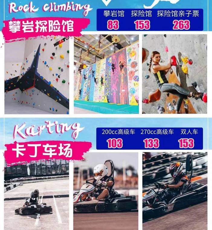 9)本次活动攀岩为免费体验,其余项目请参考以下团购优惠价格,个别会有出入,以当天场地教练公布为准!