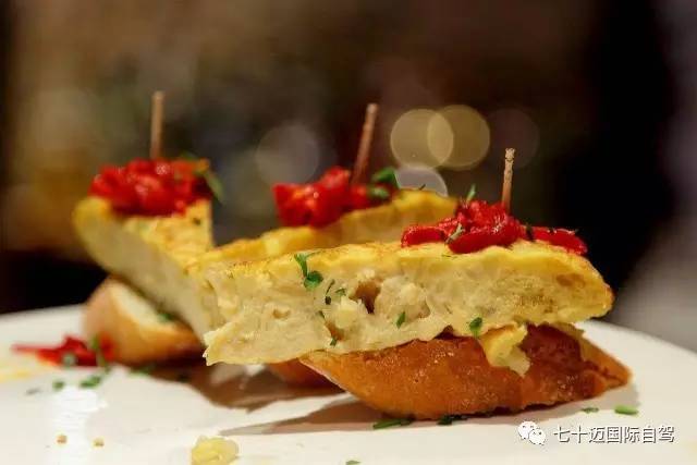 作为西班牙美食真正的国粹,Tapas的种类丰富,可冷可热,可荤可素。就像西班牙人慵懒而又热烈的民风,Tapas里也透着一股惬意随性的气息。如果你去了西班牙,千万不要过分迷恋大餐厅,找家精致的小酒吧,喝酒聊天吃Tapas,这才是真正的西班牙式生活。