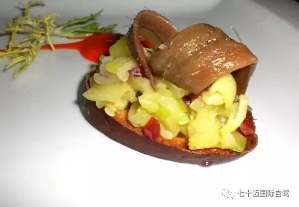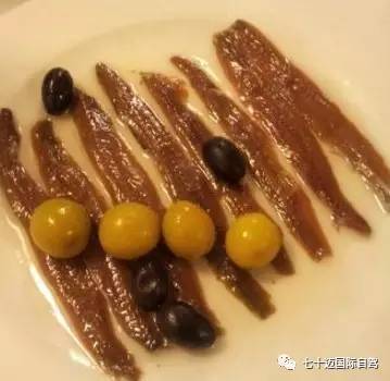 这个可不是我们常吃的油炸凤尾鱼,西班牙的Anchoas是去骨的凤尾鱼柳,配欧芹、大蒜、雪莉酒醋还有柠檬皮屑,这道菜在巴斯克风格的Tapas小馆很常见。