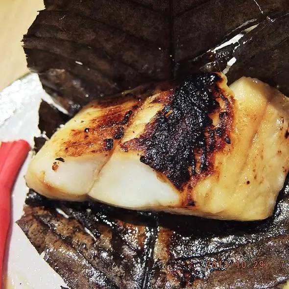 4.将新鲜的Black Cod放在味增酱和柚子汁中慢慢腌制,然后烤到恰到好处制成美味的串烧,MASU这道美味海鲜配上一杯清酒绝对是绝顶美味。