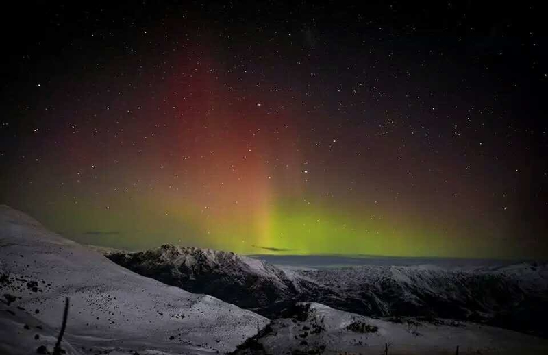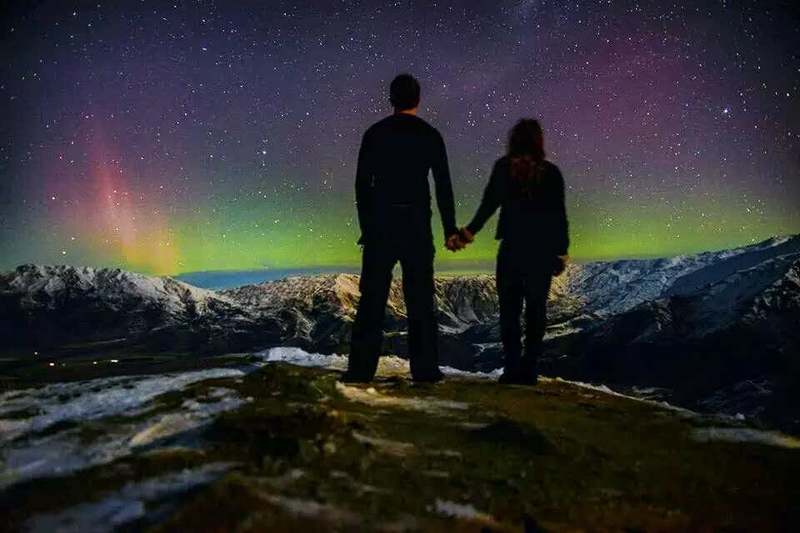 南极光一般只能在南岛的南半端看见,蒂卡普湖(Lake Tekapo)、但尼丁、皇后镇、南部地区和斯图尔特岛等地都可观赏到。七月或八月冬季夜空新月左右见到南极光的机率最大。