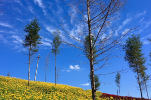 蓝天白云与花海